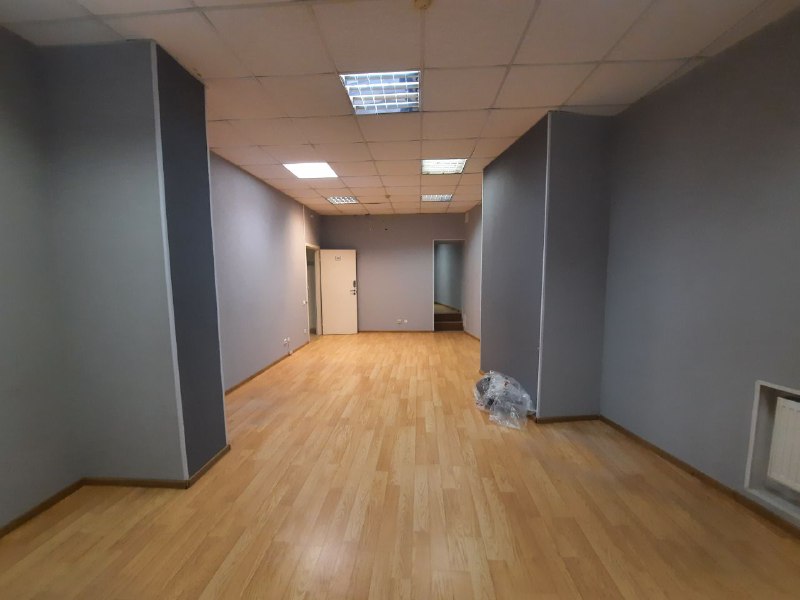 Площадь помещения составляет 56.6 кв. м, кабинетная планировка.