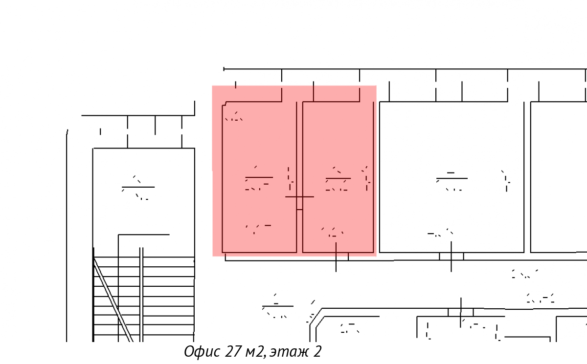 Помещение разделено на 2 кабинета, каждый из которых вы можете оборудовать по своему желанию.