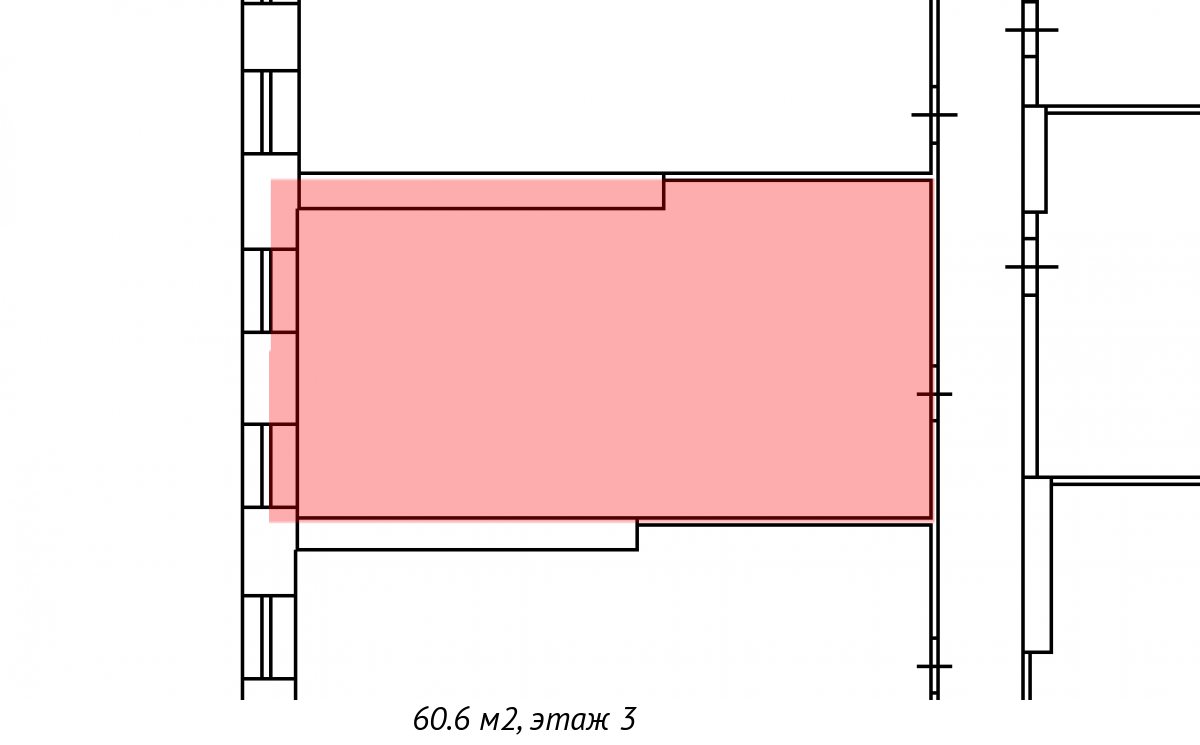 Площадь помещения: 60,6 кв. м.